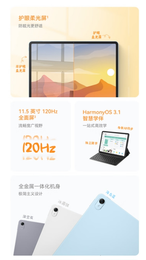 HUAWEI MatePad 2023款标准版华为平板电脑11.5英寸120Hz护眼全面屏学生学习娱乐平板8+128GB 深空灰