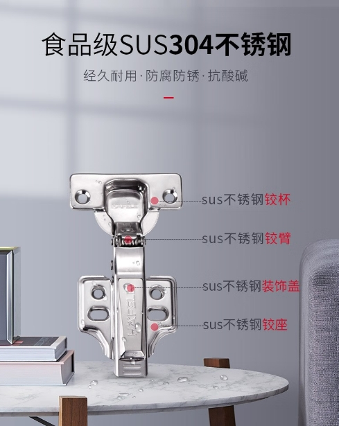 海福乐德国海福乐不锈钢铰链衣柜静阻尼缓冲铰链橱柜门通用合页家用五金 不锈钢全盖 1只 334.00.020 精装