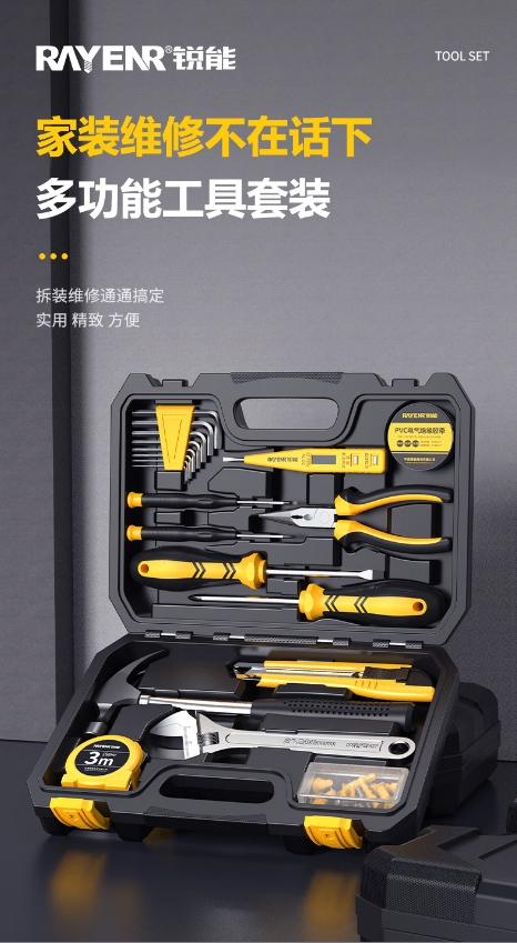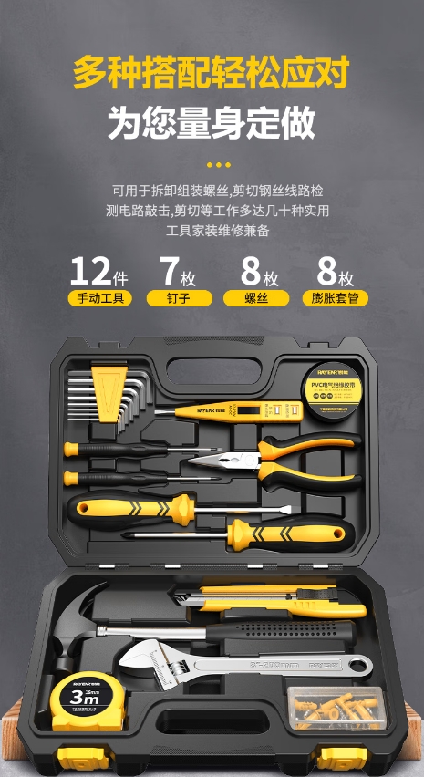 锐能家用工具箱套装五金手动工具套装电工木工多功能家庭维修工具