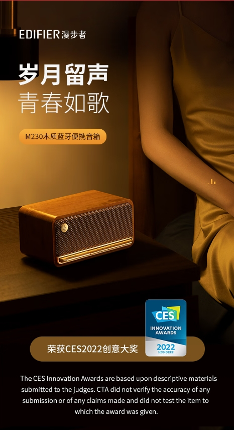 漫步者(EDIFIER)M230 高品质复古蓝牙便携音箱 桌面音响 木纹色