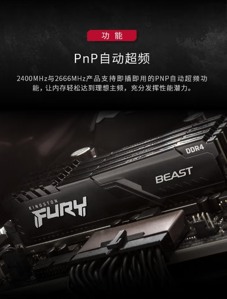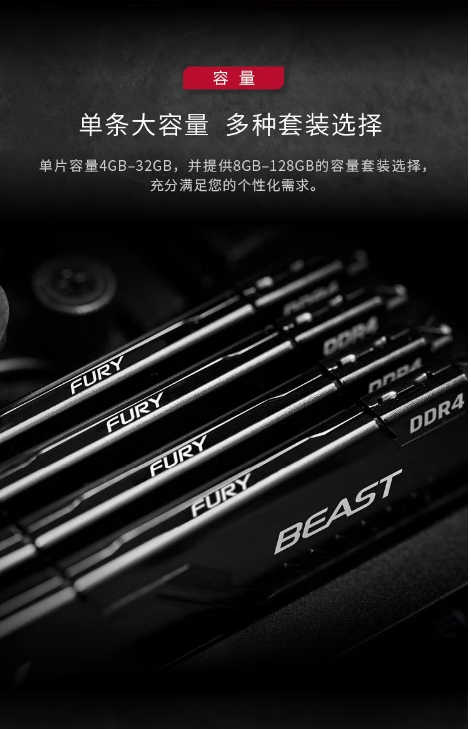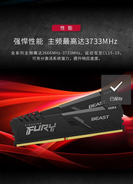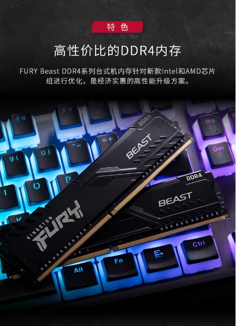 金士顿(Kingston)FURY 16GB DDR4 3200 C16 台式机内存条 Beast野兽系列 骇客神条